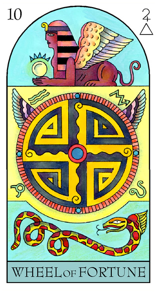 Ruled by generous Jupiter, above all, this card is a symbol of movement, change, and progress – away from stale rules and towards a future of freedom and positive personal choice. Life, and love, happen an ever-changing circle – as negative experiences follow positive. But the key is to learn and grow from both. Round signs, the number “10” and songs or stories about epic journeys can all be lucky this week.